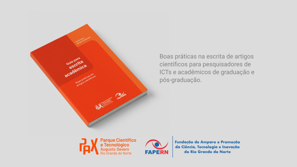 O Parque Científico e Tecnológico Augusto Severo – PAX | RN, em parceria com a Fundação de Amparo e Promoção da Ciência, Tecnologia e Inovação do RN (FAPERN), lançam o e-book “Guia para Escrita Acadêmica”. A obra, de autoria dos pesquisadores do PAX | RN, Dra. Synara Cavalcanti e Dr. André Grilo, visa ser um material de apoio essencial para pesquisadores, estudantes de graduação e pós-graduação e profissionais que buscam aprimorar suas produções científicas.